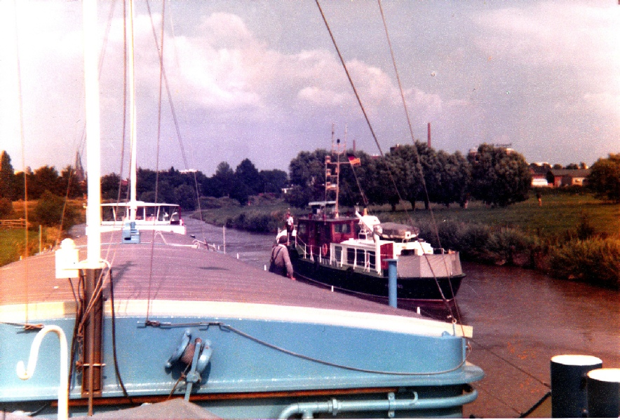 Die Fahrt der KLOSTERSANDE nach Elmshorn | Es ist Dienstag, der 14.Mai 2013, wir treffen uns im SVE, Günter Holtz und Rolf Surrow lese ich mit „Seesack“ in der Westerstrasse auf. Frank Lexau vom Autohaus Elmshorn erscheint mit einem Kleinbus im Hafen und wir fahren gemeinsam nach Hamburg Entenwerder. Der Eigner Andreas Bätjer erwartet uns und wir gehen an Bord der KLOSTERSANDE...